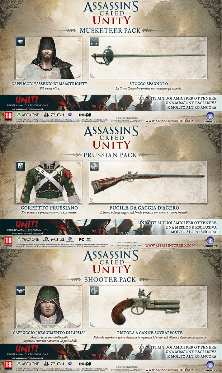 - Assassin's Creed Unity (Day One 28/10/2014)prenota e ricevi il Gears Pack (con dentro 3 ULC) - clicca qui per vederlo.